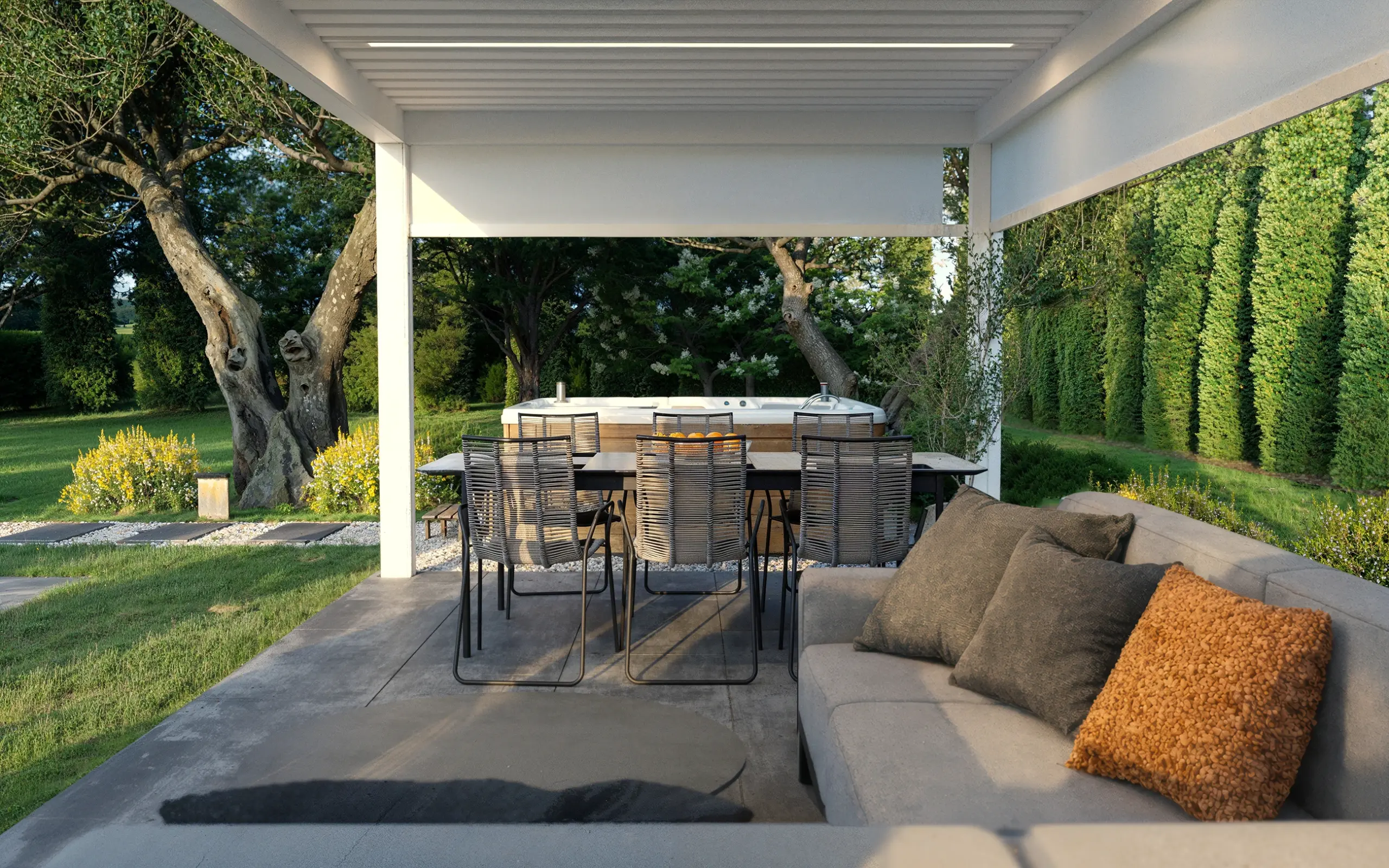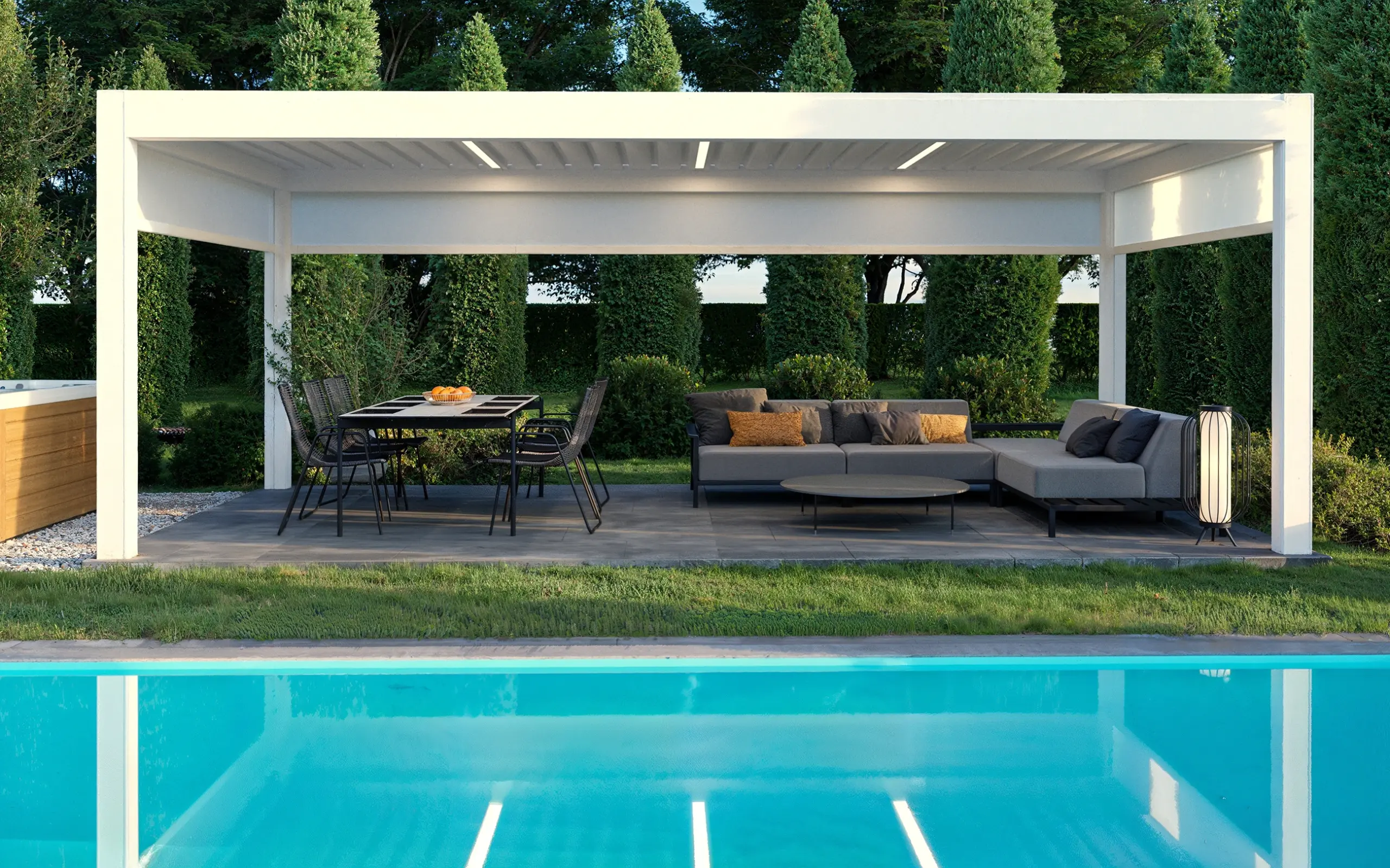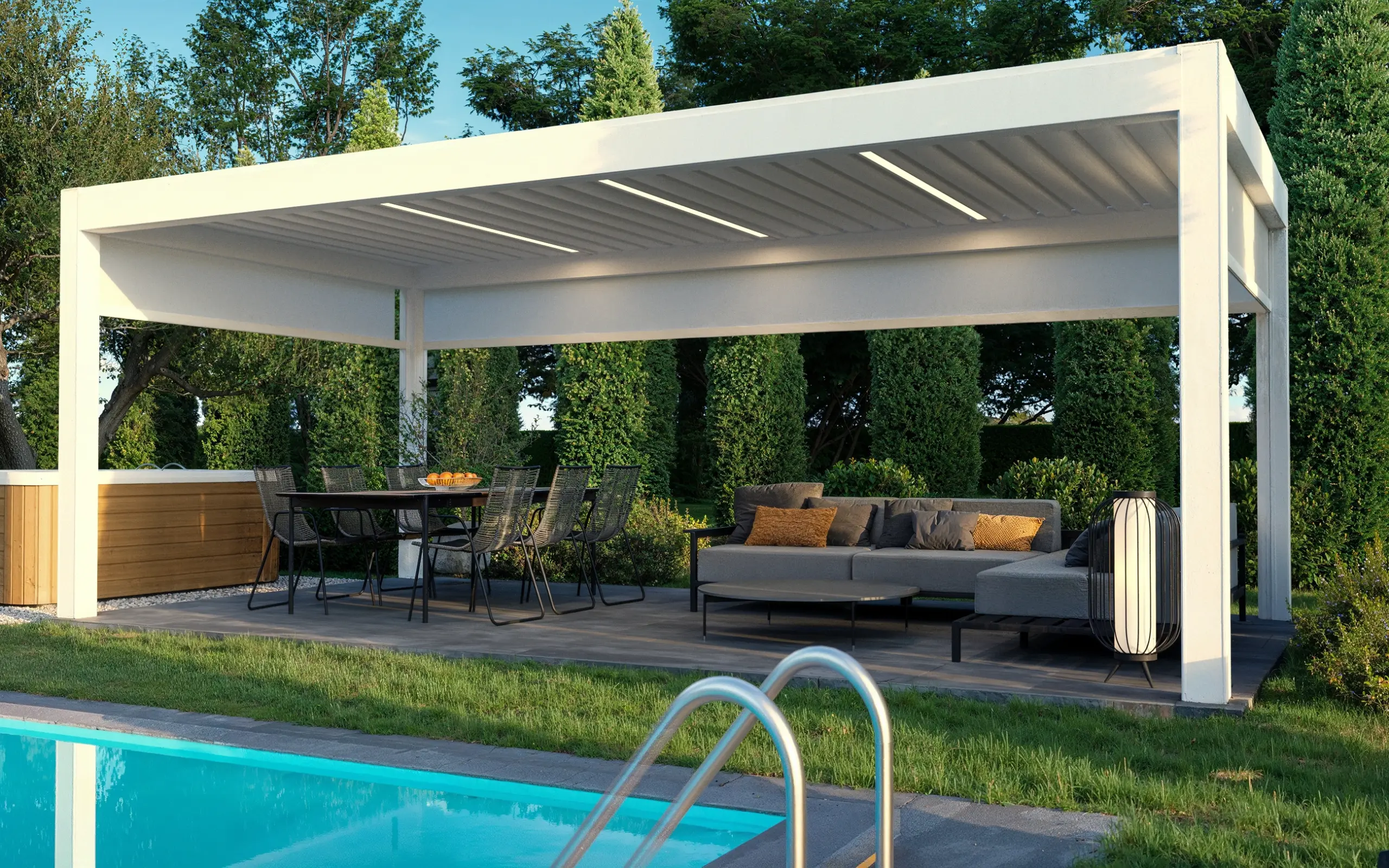 Árnyékoló – pergola termékvizualizáció – Az értékesítéshez nélkülözhetetlen termékvizualizációkból katalógust, szórólapot, VR 360-as panorámát, és látványos grafikákat készítünk. A termékek környezetét illetően szó szerint csak a képzelet szabhat határt. A termékvizualizációkat rend szerint háttér nélküli, és külső vagy belső környezetbe helyezve is elkészítjük.