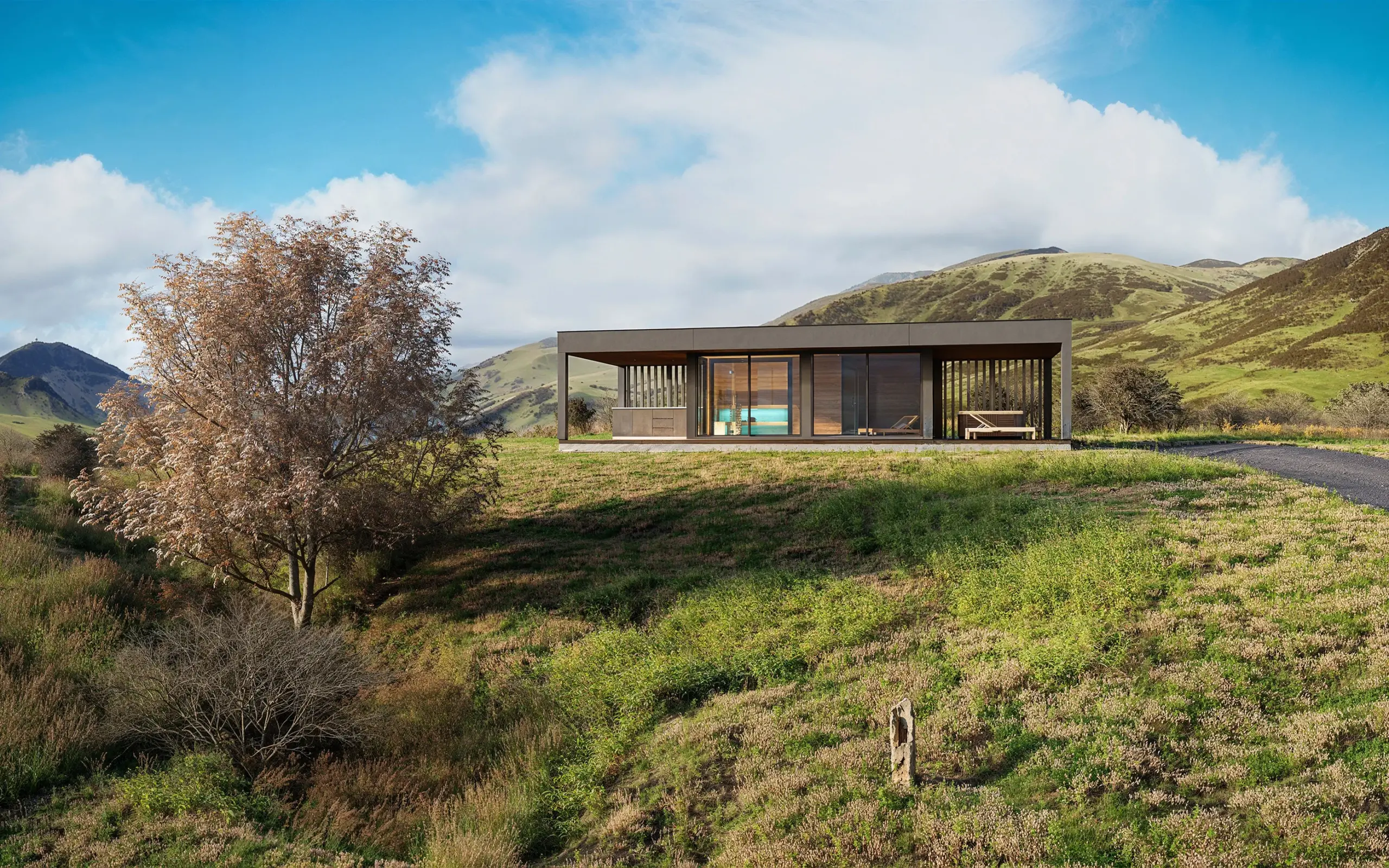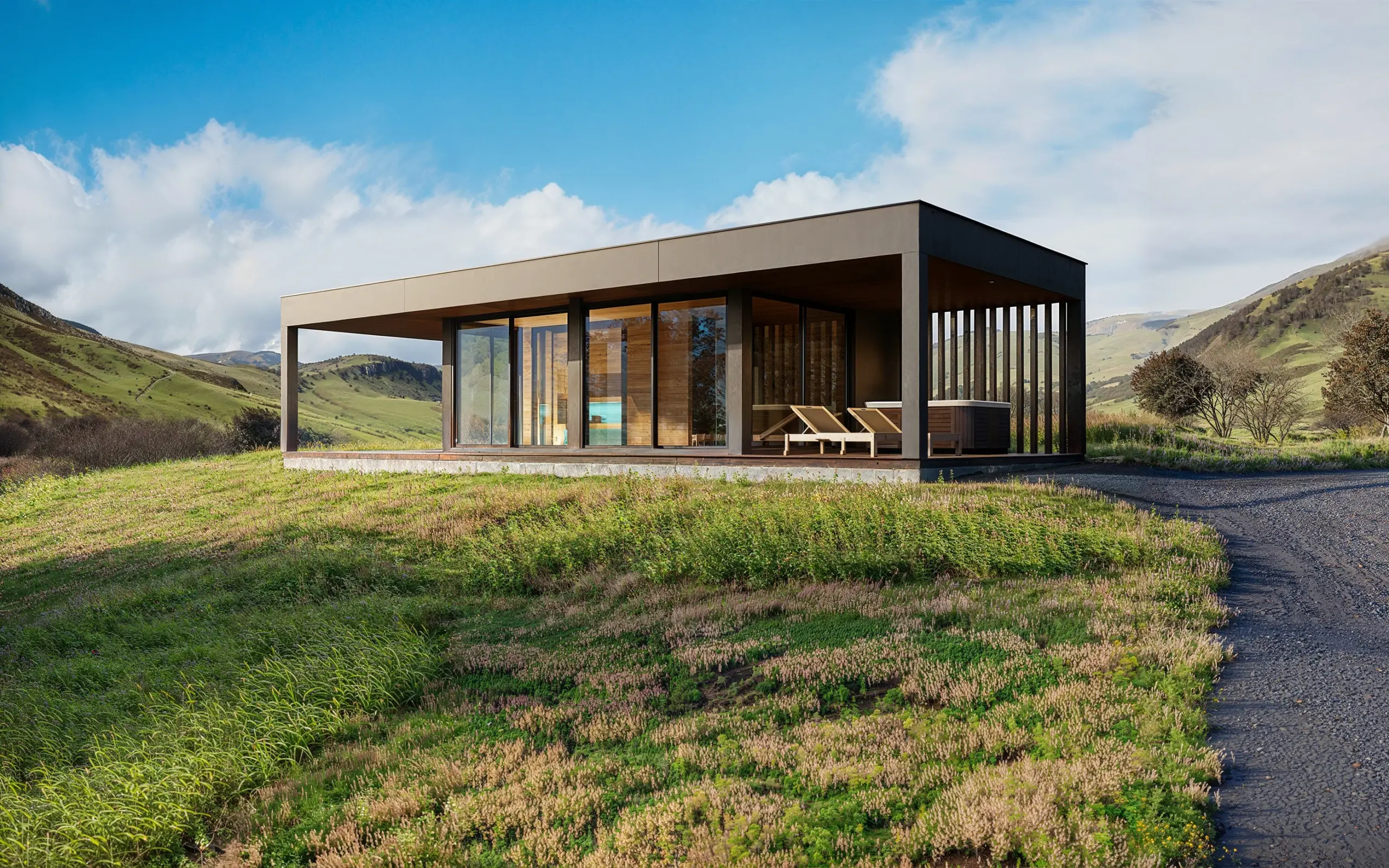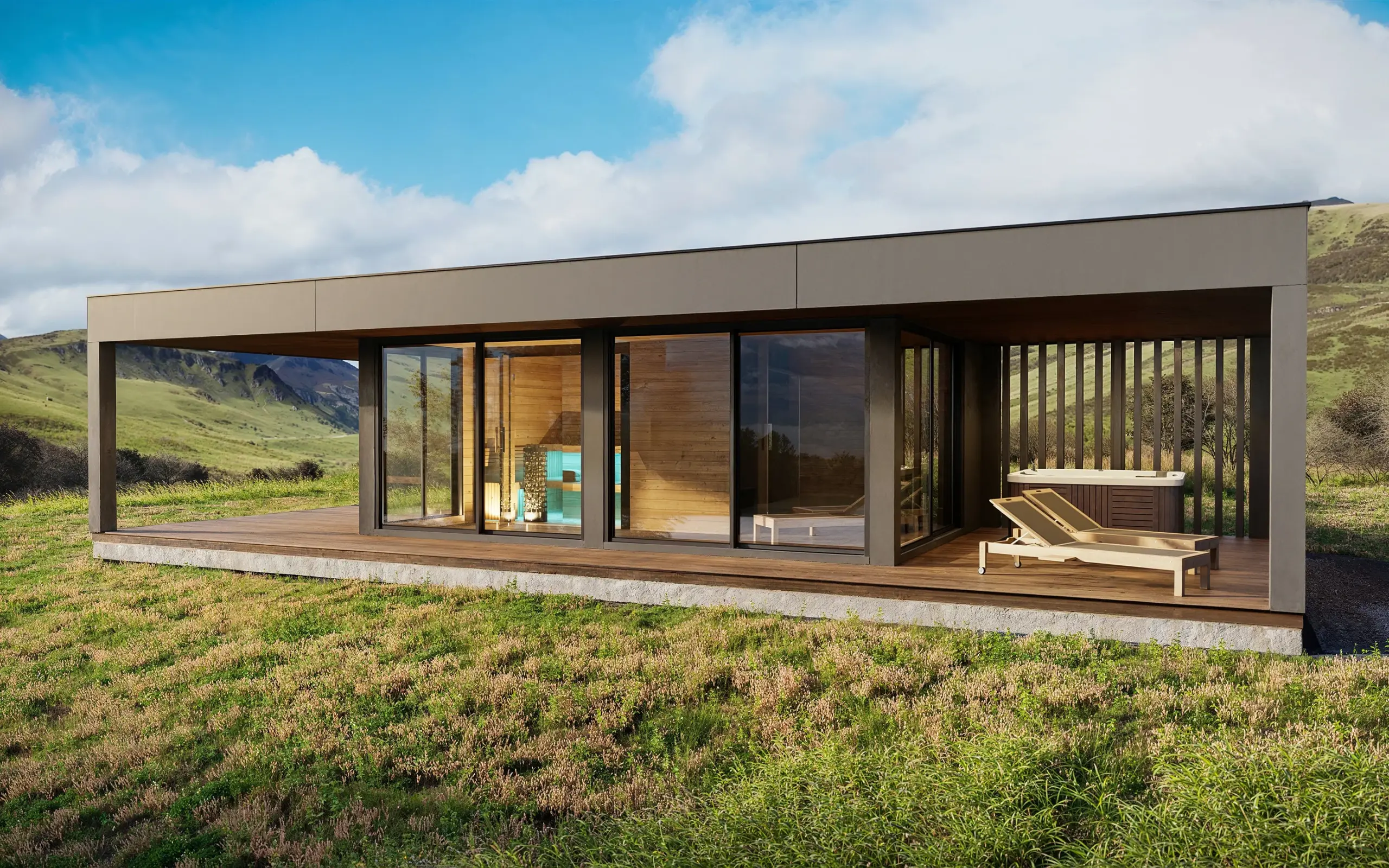 Kerti relax ház szaunával – látványterv – Skócia Skye sziget ihlette legújabb kerti ház látványterveinek környezetét. A látványterveken látható épület modellt különféle színekben és többféle árnyékolóval is megjelenítettük.